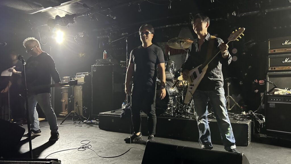 後輩飯島と柏木のやるポップなバンド。今回、泰葉のフライデーチャイナタウンをやってましたね。僕がぜんたけぺーにょっちでやっている持ち曲だったので、楽しく聞かせてもらいました。俺たちがやるとほぼハードロックなのに、原曲は全然違うことを再認識できたよ(笑