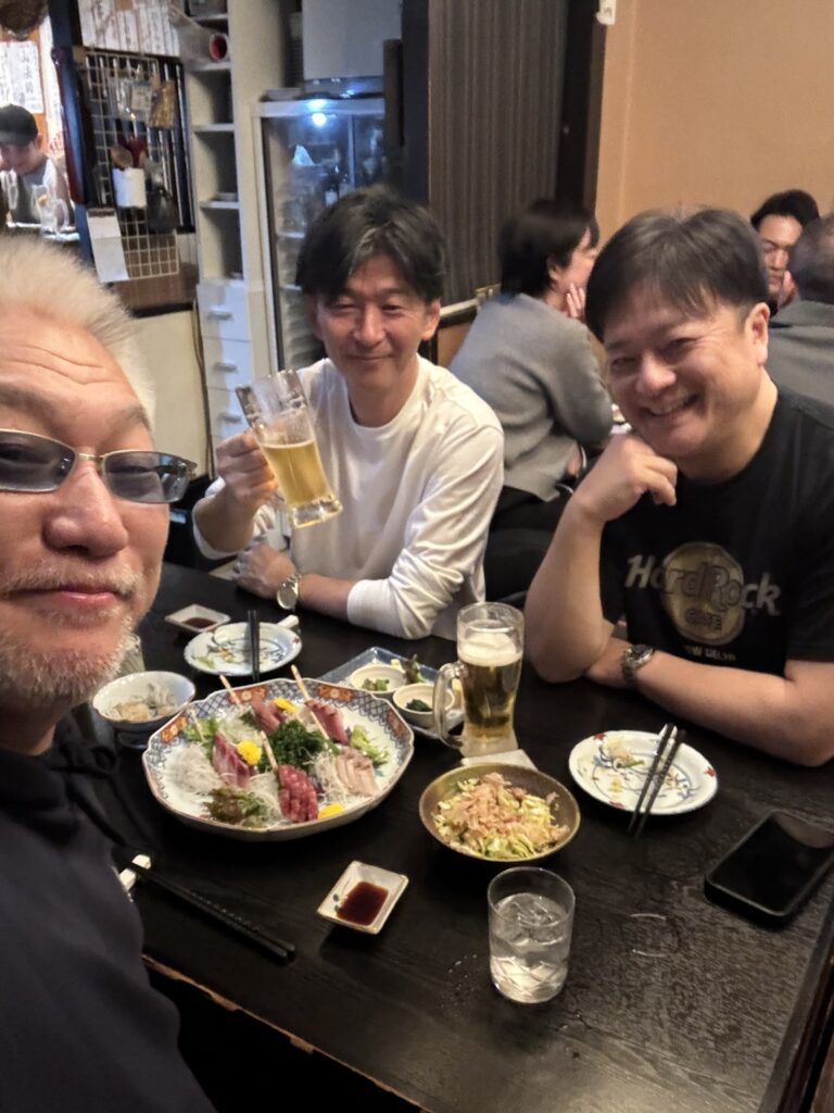 これらの写真は、2025/3/1に横浜の野毛(桜木町)で3人で飲んだ時のもの。ここでバンドが確定しました。美味しい刺身を食いながら♪