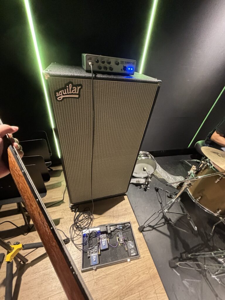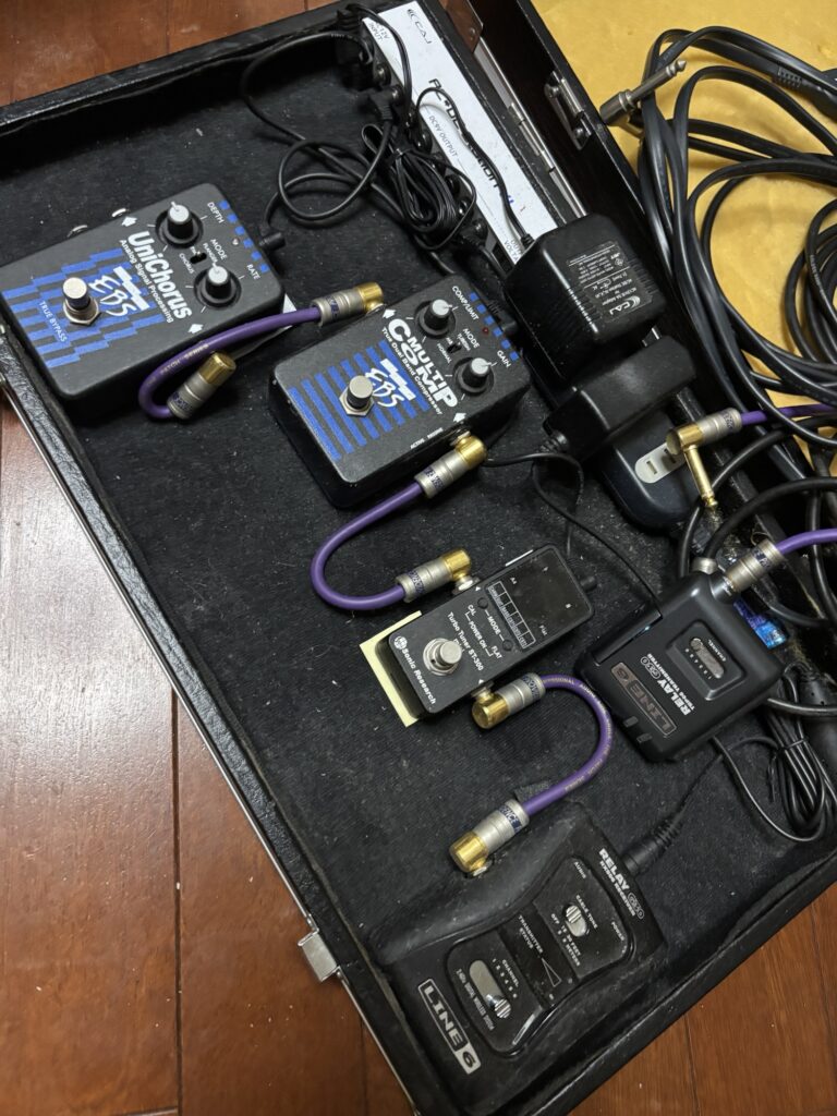 エフェクターは、EBS Multi Comp入れっぱなし、と一部だけEBS UniChorusを軽く。その他は、Line6ワイヤレスとチューナーだけです。