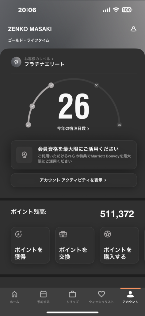 僕は、現在通算410泊で、プラチナエリート以上での年数5年です。