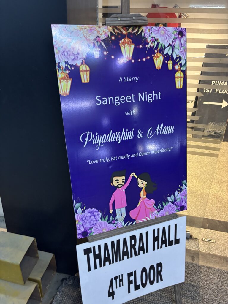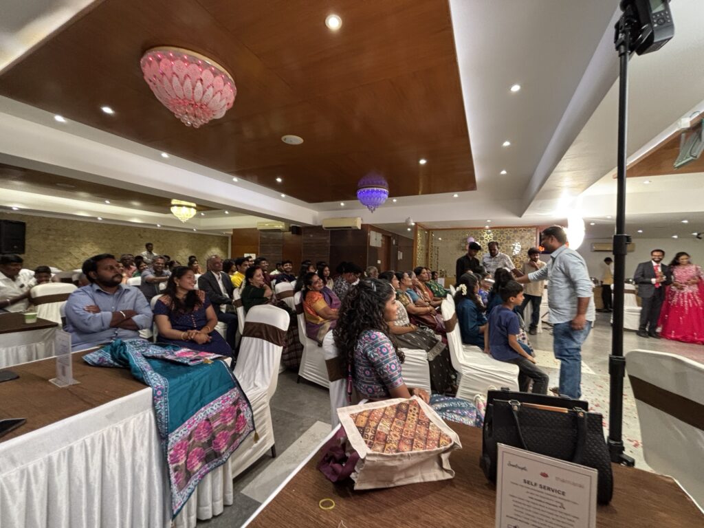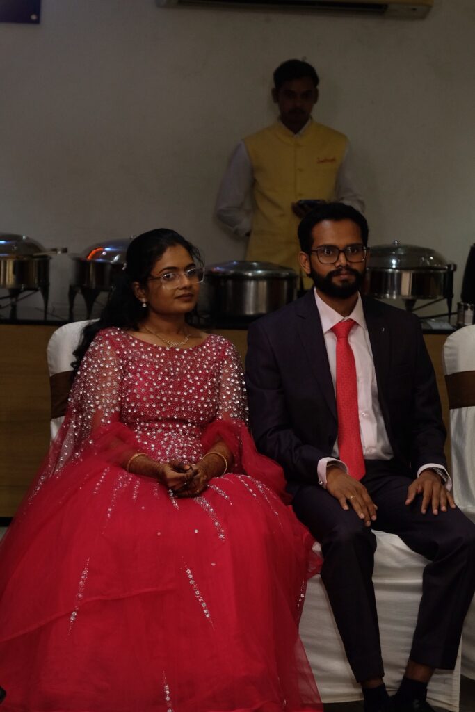 この日はホテルを16時にチェックアウト(ワタクシ、Marriott Bonvoyプラチナですので、チェックアウトは無料で16時まで延長できちゃったりします。。)し、時間を潰し、18:30ごろ結婚披露宴会場に向かいました。比較的こじんまりとした結婚式会場的な場所でしたね。建物の2階が披露宴会場で、3階が食事会場でした。北インドではイベントが派手で待たされるばかりですが、南はリーゾナブルでちゃんと時間通りに展開されます。しかし、日本のように段取りされた進行があるわけではなく、デコレーションされた会場の壇上に新郎新婦や親族がおり、彼らに挨拶して贈り物を渡し、写真を撮影する、という段取りで、その順番待ちの行列がある、といのが南インド結婚披露宴の常ですねー。そして、我々写真業界ですので、イベント写真などは会社のスタッフが段取っております。