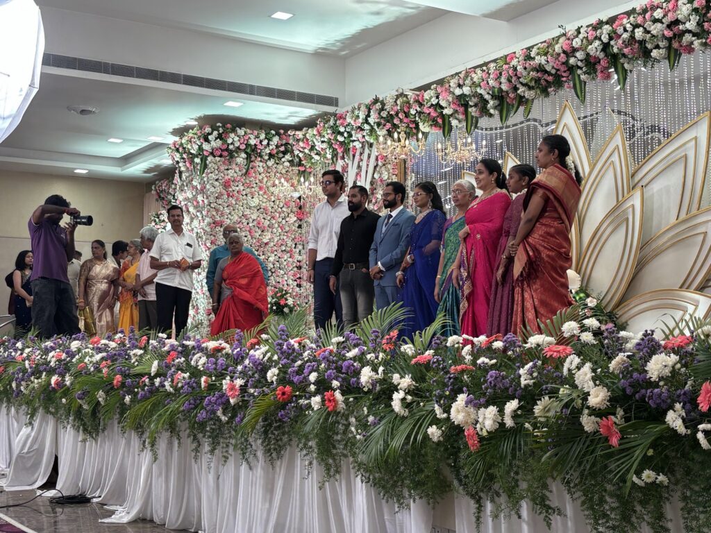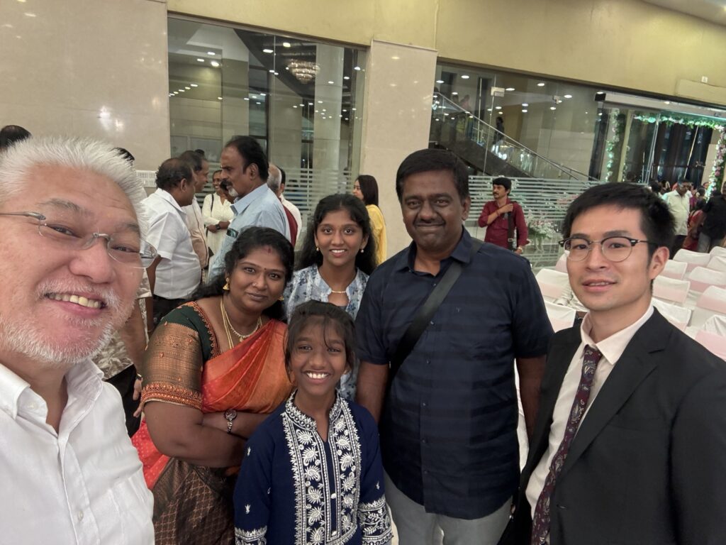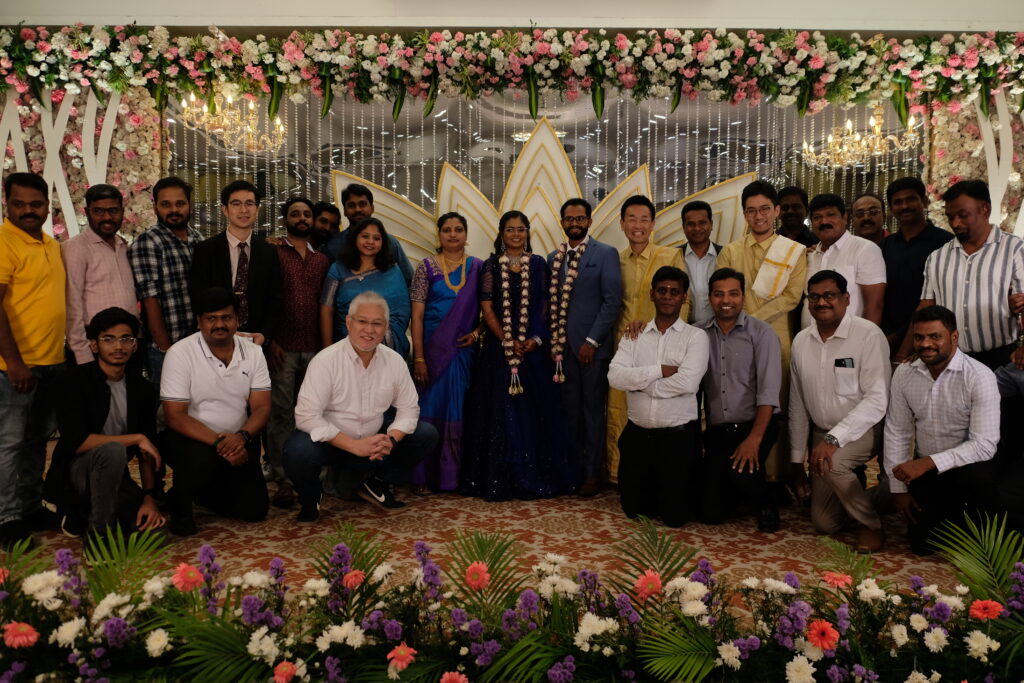 我々二人は彼らの親族、会社のインド人元同僚、そしてインドのお客様に懐かしい再会をします。インドで9年も働いておりましたので、たくさんの同僚やお客様がおり、彼らと再開できたのは本当に嬉しい。そして現在そこで働いている日本人同僚2名も正装で参列しに披露宴に参列し、いい時間を過ごしました。しかし、VIP(笑)である我々は、申し訳ないですが、写真撮影用の行列を無視して割り込んで挨拶と写真撮影をやらせてもらいました。