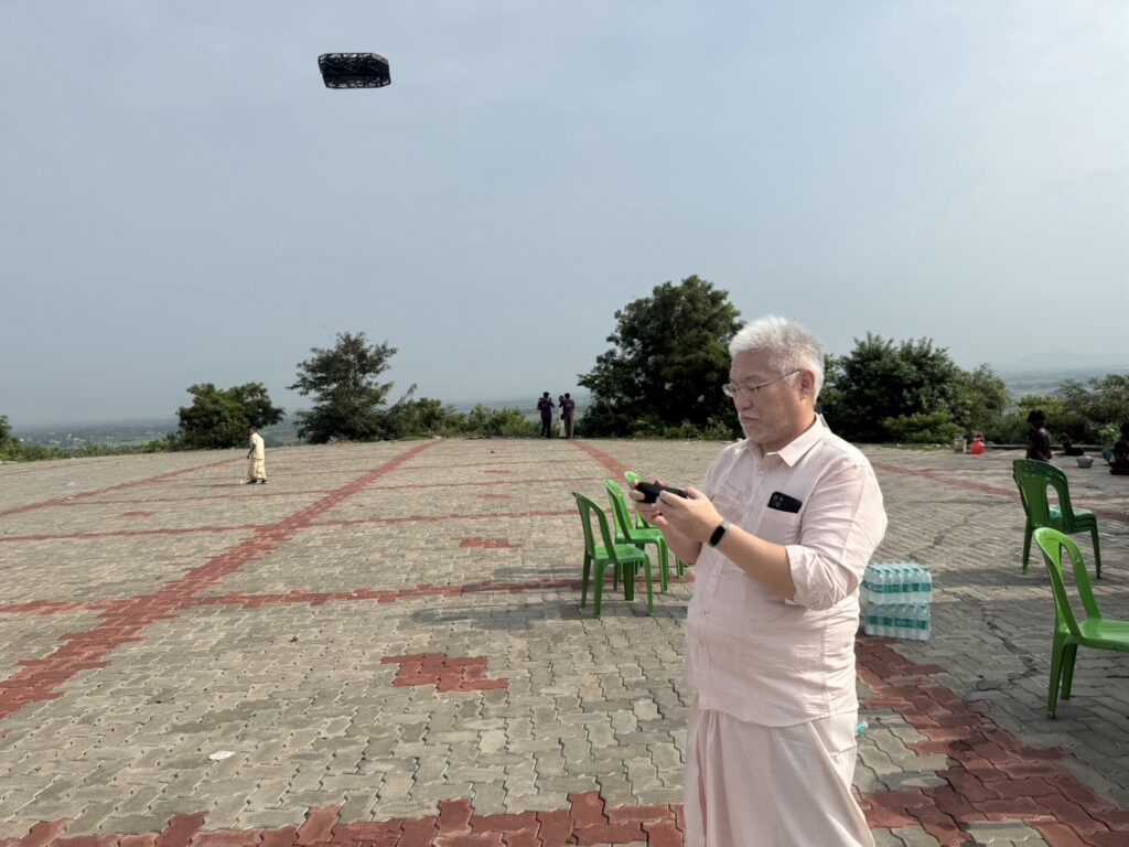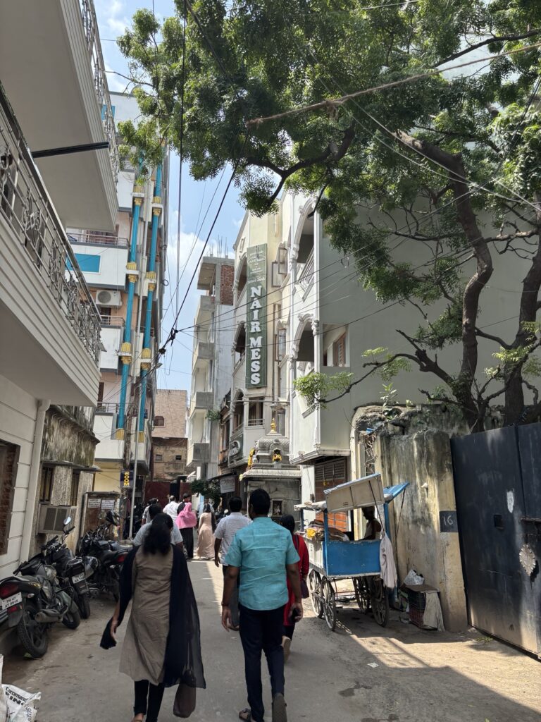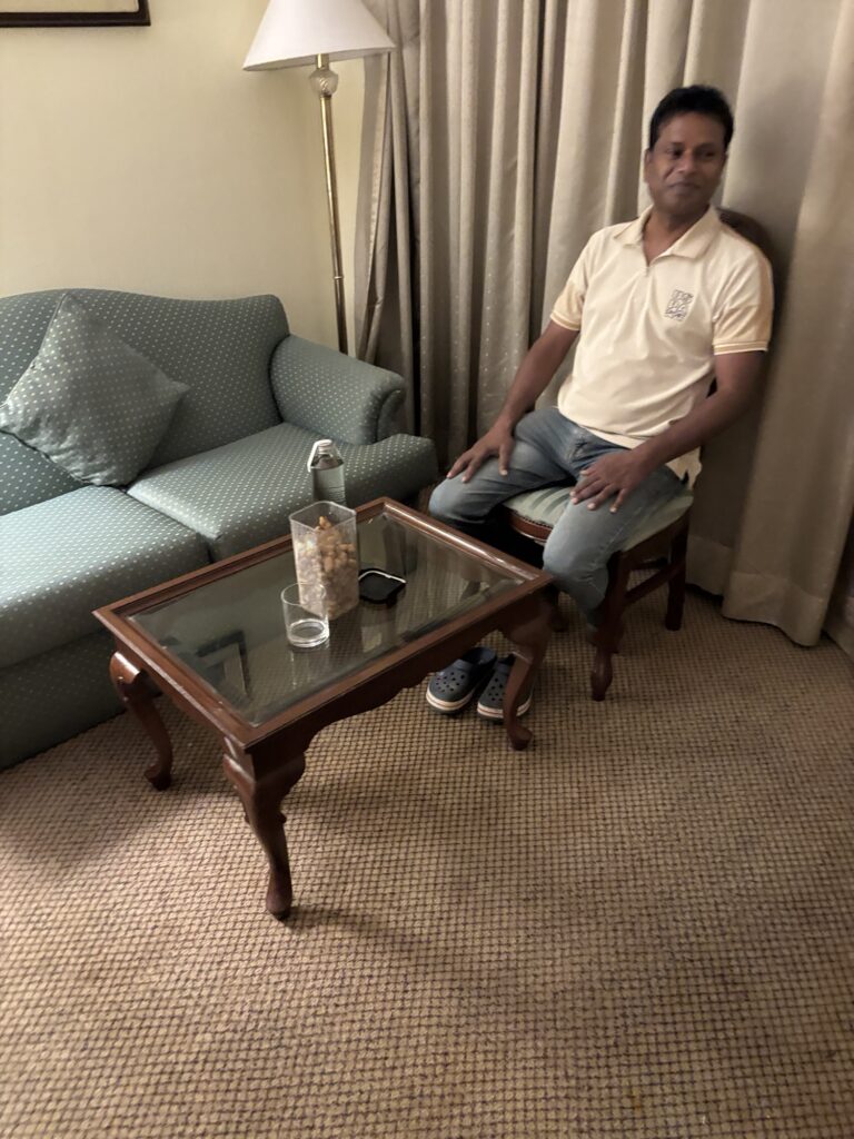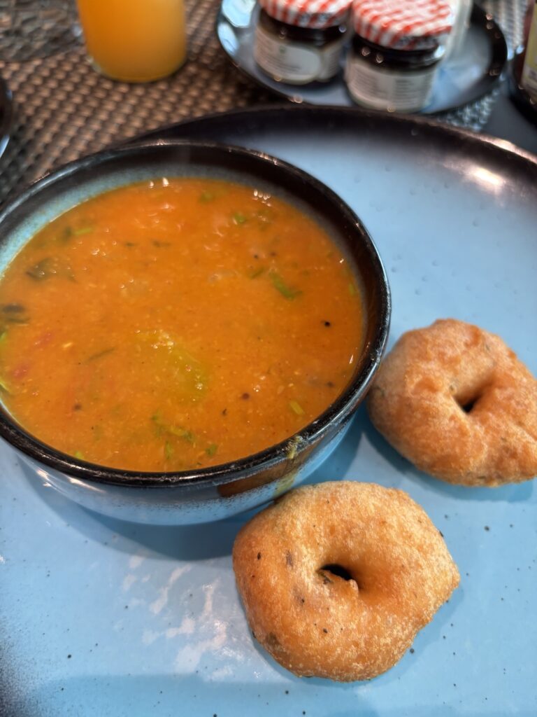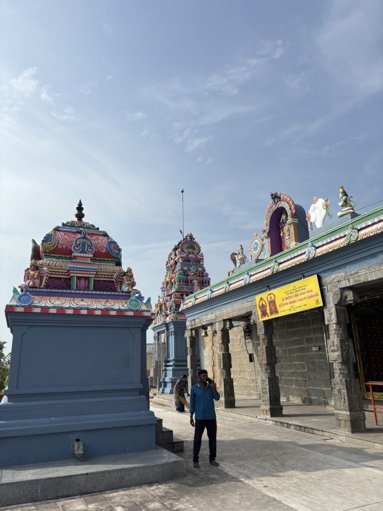 さ!いよいよ結婚式当日、2025/11/3です。この日は朝9時から郊外の寺院で結婚式、夜は披露宴という段取りです。スケジュールの都合でこの日の深夜に帰国便に乗るので、ホテルもチェックアウトしないといけないので、なかなか大変な1日になります。そもそも朝に結婚式、というのが珍しいですが、インドでは、というか南インドでは割と普通でして、自分も何度か参列したことがあります。郊外に朝9時で、その前に朝食を現地で食べる、ということでホテル出発は朝6時、、、Centhilが用意してくれた南インドの正装を着て向かいます!