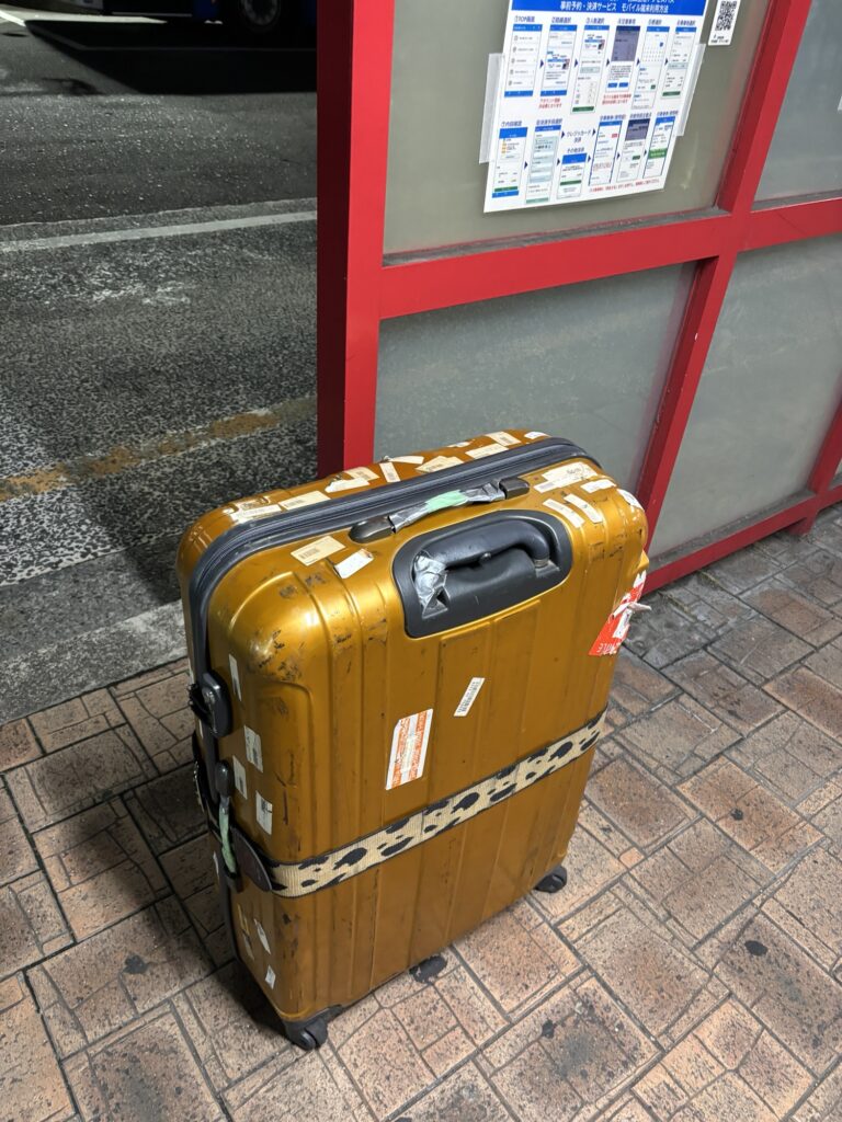 久しぶりに出してきたスーツケースはもう長く使っていてボロボロでした。取手にもガムテープ(笑