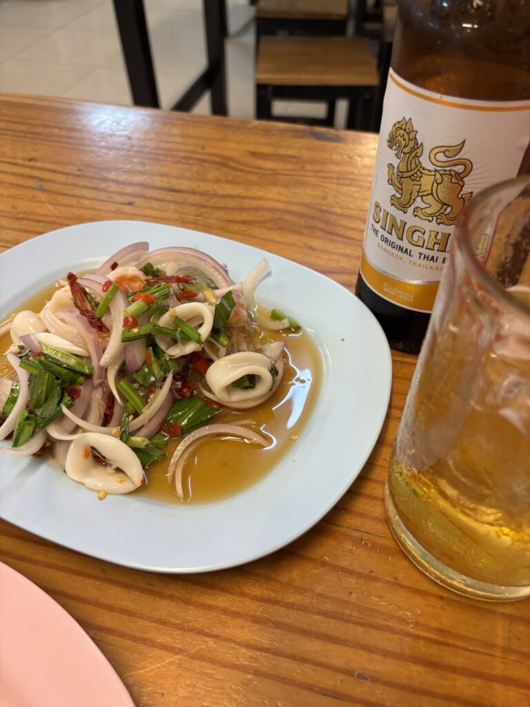 そして、プロンポン駅そばの有名なIMCHAN(イムチャン)へ。まずはヤムウンセンとシンハービール♪僕にとってのタイ料理の代表はヤムウンセンです。美味しい!しかし辛い!しかし美味しい!、、、辛い(笑