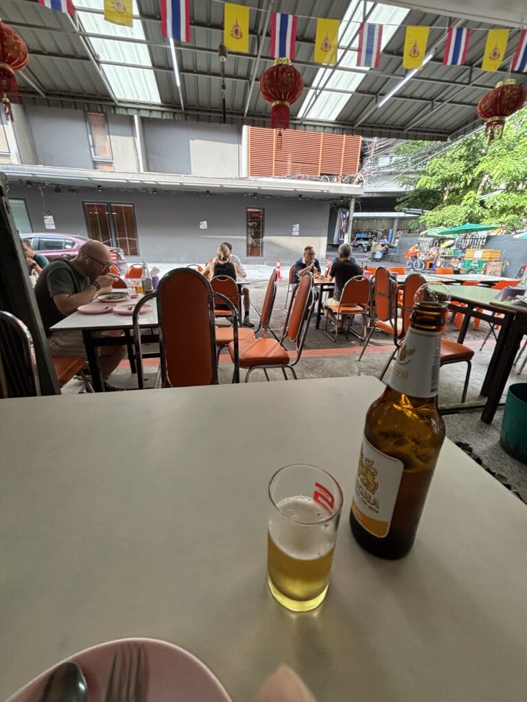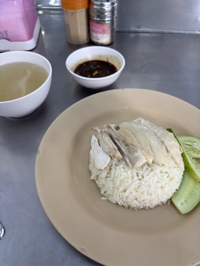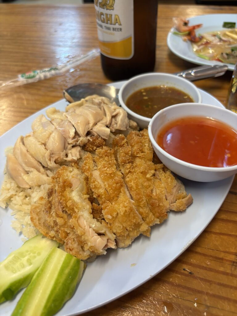 もう一本ビールを頼み、朝ご飯ってことで、MIXチキンライスをオーダーしました。唐揚げと蒸し鶏が乗ったやつですね。おいしい♪