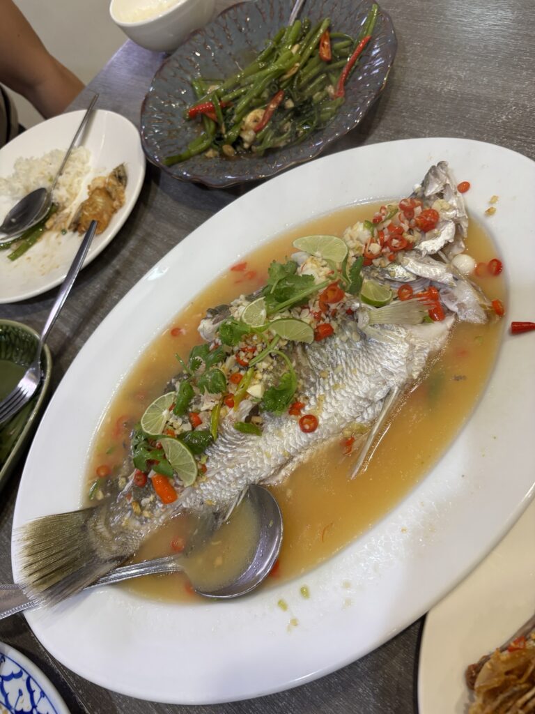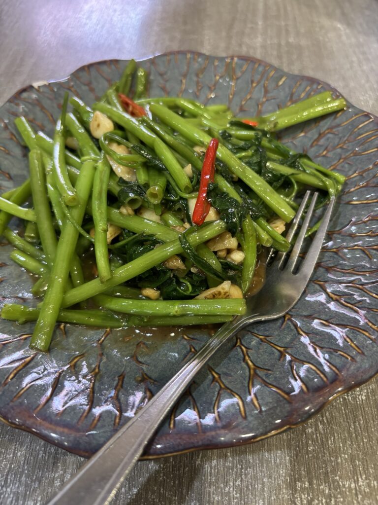 午後はホテルでのんびりと過ごし、晩飯はいつものソントーンではなく、その近くのクントンシーフードに行きました。それにしてもSoi 22/24は雨もあり渋滞がひどくタクシー移動は時間がかかりますね。結局金曜日の18:20ごろにお店につきましたが、まだお客さんはゼロでした。ちょっと不安になりますね。。ACありのスペースのテーブルに座って、空心菜炒め、海老のガーリック炒め、チキンウィング、スズキのスパイシーレモンソース蒸しなどを頼んで美味しくいただきました。いやあ、美味い!シンハービールもガッツリ飲みました!