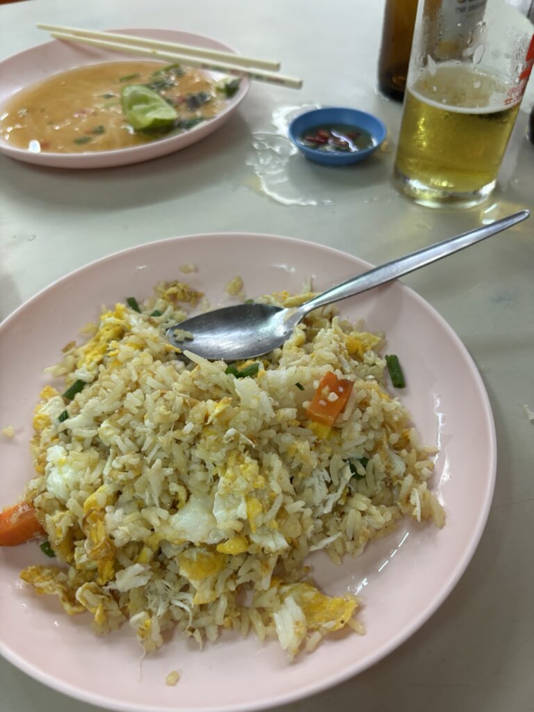 夜便でチェンナイに移動するのですが、まだまだ時間はあったので、16:30頃アソーク駅そばのよく行ったローカルレストランSUDAに行ってみました。ここは外国人だらけで楽しく飲食しています。まずはヤムウンセンとシンハービール!ここのヤムウンセンはイムチャンより美味しいと思いますね。いやあ、うますぎる。。。そして最後にカニのチャーハン小サイズを。うまい!バンコク飯の最後として最高でしたね。