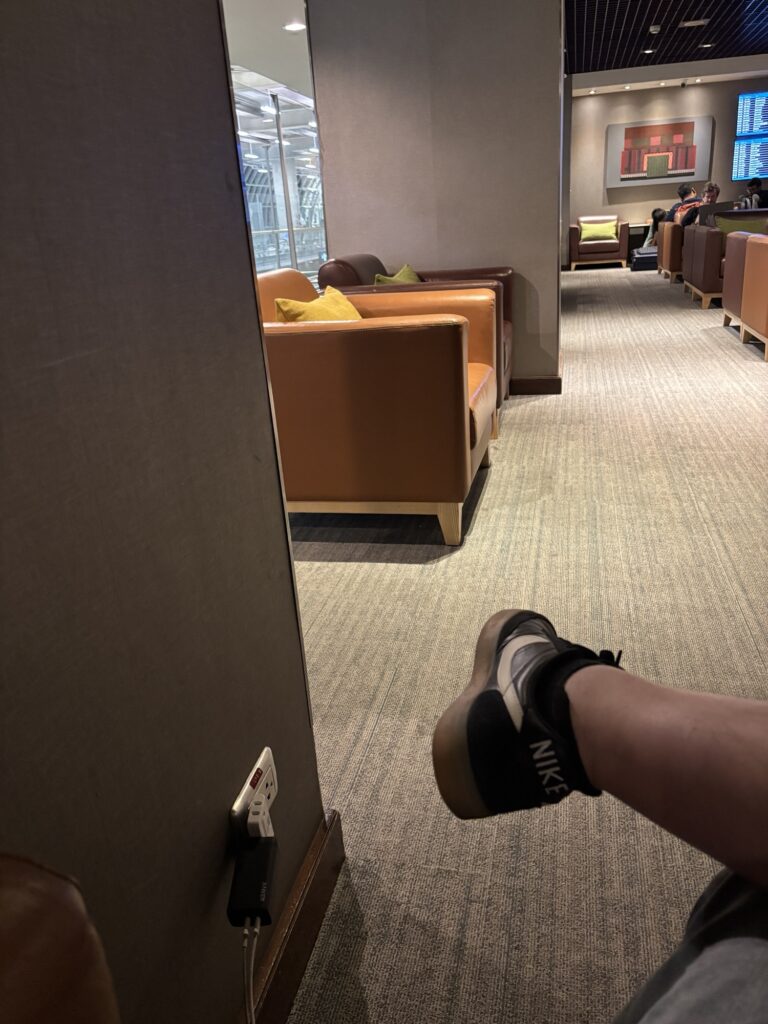 TGのラウンジは快適なんですが、電源が少ないのが問題です。電源在り席の競争率が高いです。あ、俺はゲットしました