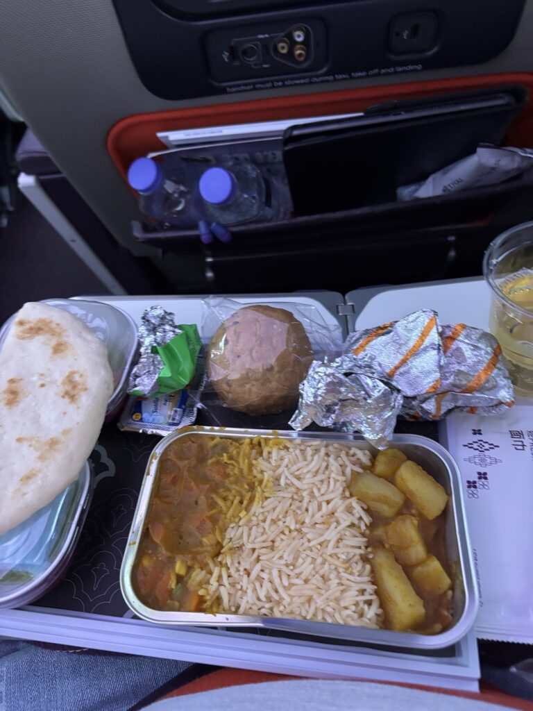 がっかりのインド飯の機内食、、食いすぎていて、流石に食えませんでしたが。。