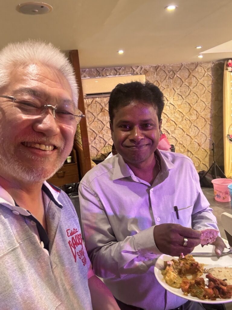 仲良しのチェンナイの元同僚でお得意様の重役のRavi Chandと。牛肉食えないのに吉野家の牛丼だけは食えるお茶目なやつです。
