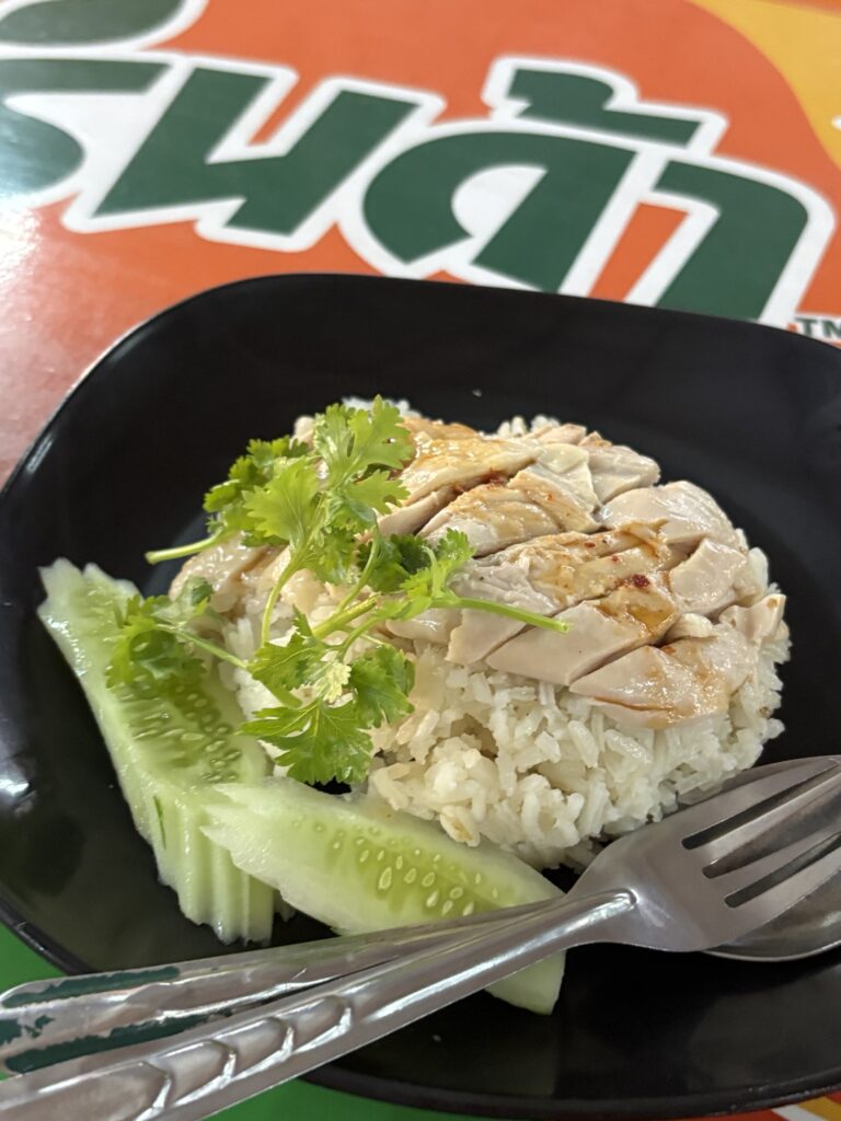 カオマンガイは50バーツ。前は40バーツだったので値上げしていますね。そして、出てきたカオマンガイの鶏肉はどうも盛りが少ない。。。なんだか世知辛いね。味はよいんですが。。。