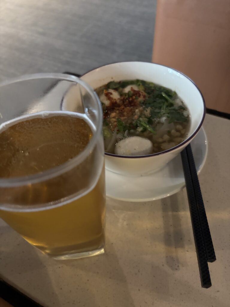 その後SUDAに行こうかとも思いましたが、なんとも腹が減らない。。ま、空港に向かうことにしました。荷物ないので、当然ながらBTSでAsokへ、スクンビット駅からペチャブリ駅へ、Makaasanから空港へ。王道の電車移動です。安くて早いからね。羽田行きのタイ航空は15時ごろの出発ですが、昼頃スワンナプーム空港へ到着し、ラウンジでゆっくりすることにしました。タイ航空のRoyal SILKラウンジはタイ料理が食べれるのがありがたいんですが、この日も美味しいヌードルがありましたね。