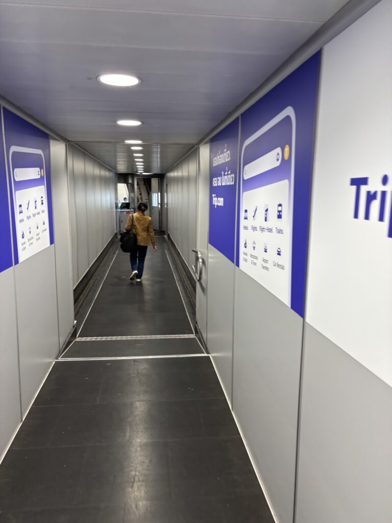 搭乗の通路の壁には、Trip.com広告。。。さすが