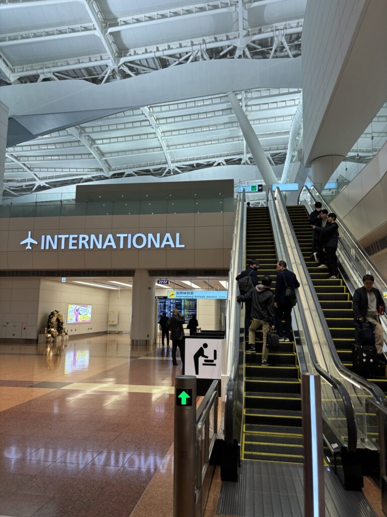 羽田空港第2ターミナルの右側に国際線が。出発ゲートはエレベータで上の階へ