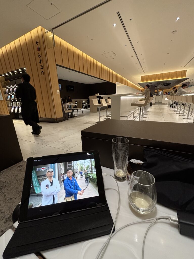 全日空ラウンジ。iPadでダウンタウンプラスを見ています(笑