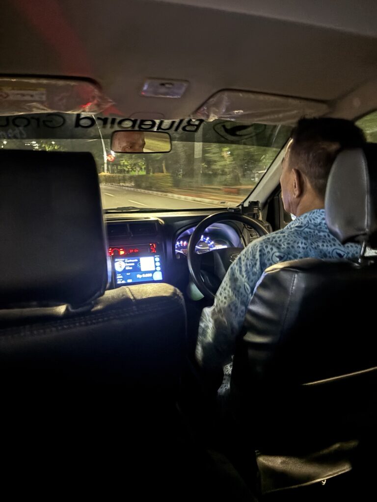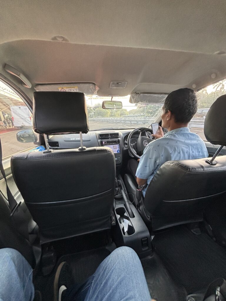 そして、表に出ましたが、まだ朝6時前。インドネシアの同僚Josefからは「Bluebirdタクシー一択!」と言われていたので、そのタクシーカウンターに向かい、乗り込んで、行先を伝えてジャカルタ市内のBlock Mに向かいました。6:45ごろホテルに到着。高速料金含めて、220,000ルピアほど。2,000円ぐらいですね。いや、ラクチンですな!
