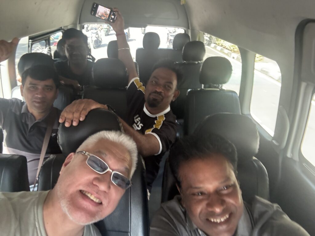 この日は朝からインドチーム4名と私と5人でジャカルター市内観光ツアーに申し込んでいました。GetYourGuideで申し込んだツアーでしたけど、とにかく観光地のないジャカルタですし、赤道近くでめちゃめちゃ暑いなか移動も大変ですから、とても助かりましたね。朝9:00にガイドのNabilaが迎えに来てくれていました。彼女はムスリムでヒジャブをかぶってましたが、とても流ちょうな英語を話すし、親切で可愛らしい女性でした。この日はラッキーなことに我々5人だけが参加のツアーでして、マイクロバスを占有できましたね!