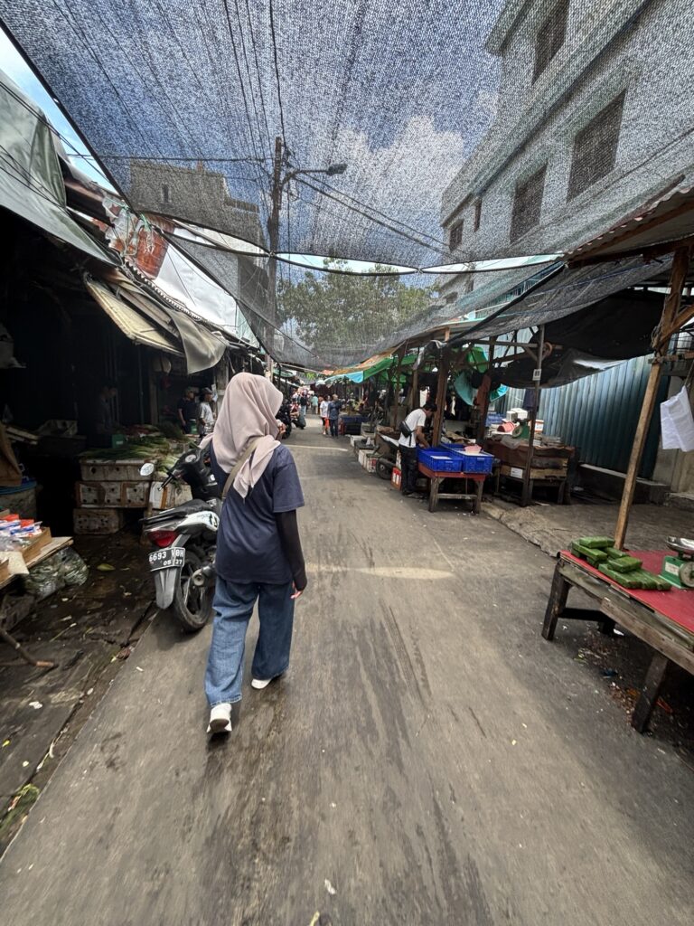 中華寺近くの路上マーケット。歩いているのは、Nabilaちゃん