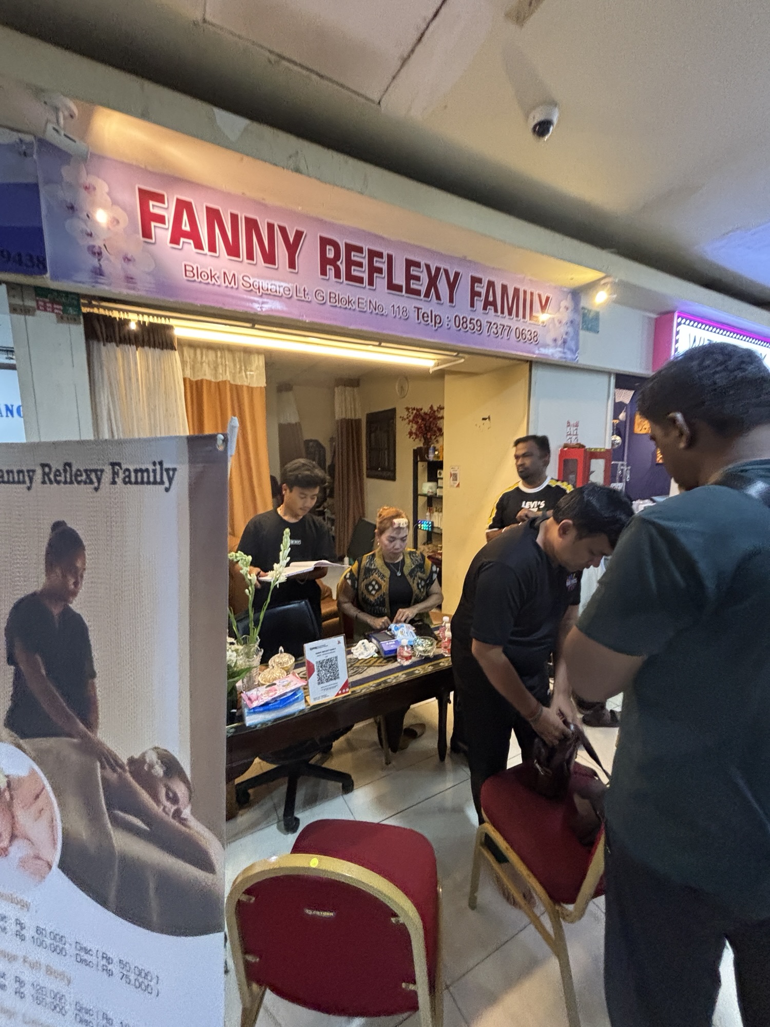 - この日、晩飯まで時間があったので、インド人たちがお勧めするローカルなマッサージ屋さんに行ってみました。Blok Mの中心地にあるドローカルなショッピングビルの地下にあり、なんと1時間強で100,000ルピア(1,000円弱)..しかもかなりパワフルですごいゴリゴリ揉み倒してくれます。実はほぐされすぎて翌日はモミ返しでしんどかったですわ。