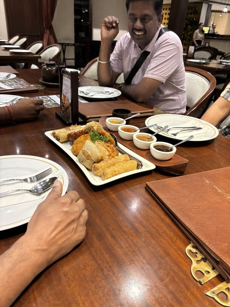 そのBaboojiというお店はタクシーで20分ほど。薄暗いお店の本格インド料理屋さんでした。とはいえ、メニューにはインド中華品(Hakka NoodleやHot&Sour soupなど)もありましたね。我々は勝手知ったるインド料理で、そうはいっても食傷気味ながら、自分も食べたいムルグマライティッカもオーダーしたり、インド料理を堪能させてもらいました!