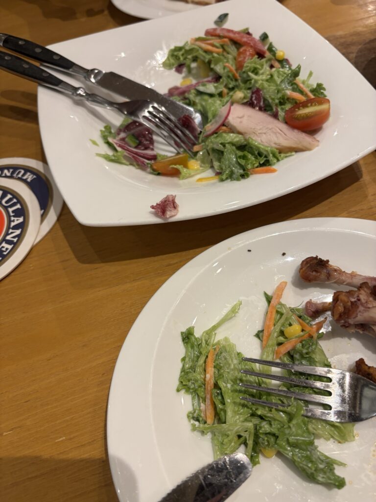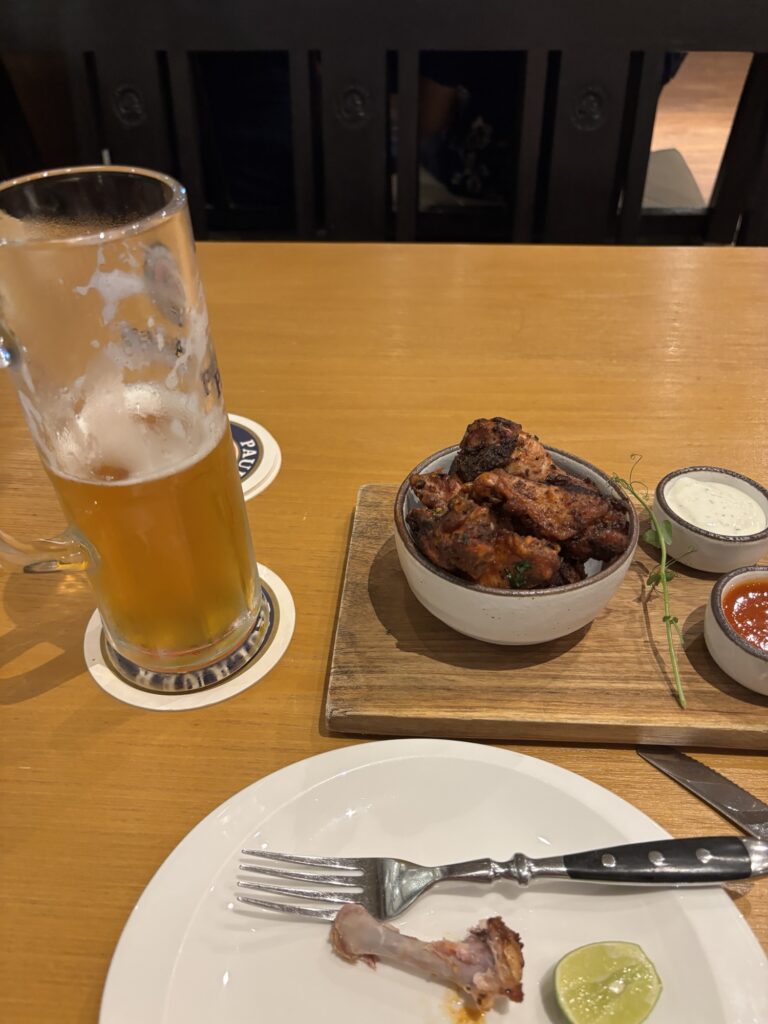 で、午後にショッピングモールに移動して、ドイツ料理屋さんに入ってみました。とはいえ、ここでもビール数杯とチキンウィングとサラダを食べただけ。だらけてるなー