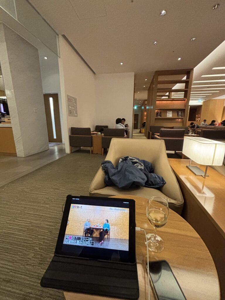 さくらラウンジにてiPadでダウンタウンプラスを見て時間つぶしました。この後、Tと偶然、、