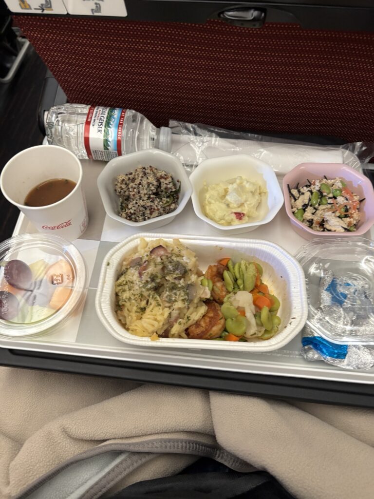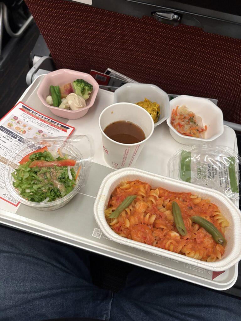 JAL便、夕食。シーフードパスタでした