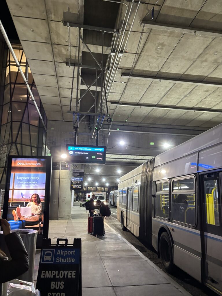 レンタカーセンターからはブルーラインのシャトルバスでTerminal Eへ。