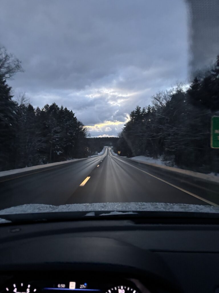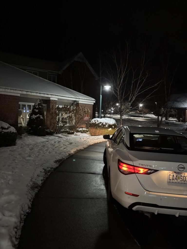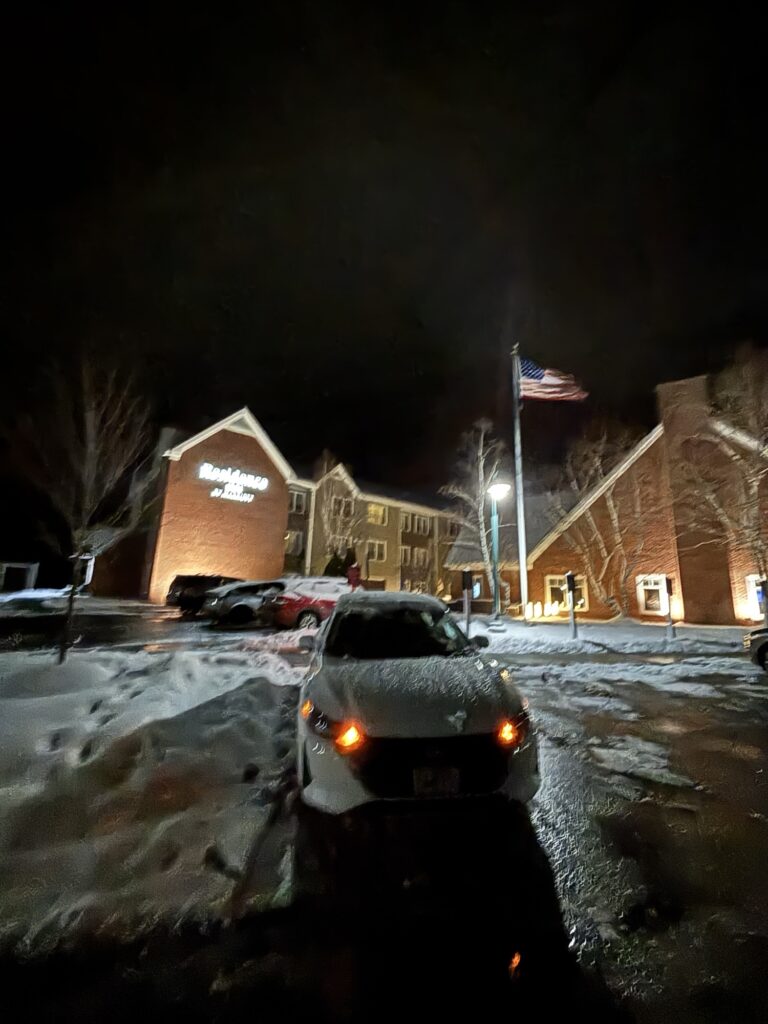 JAL便は定刻通りBostonへ到着。イミグレーションもそれほど混んでおらずスムースに外に出れました。Boston空港には初めて来ましたけれど、こじんまりした感じであまりごみごみしていませんね。外に出て、Rental Car Centreに向かうブルーラインというシャトルバスに乗り込みます。日曜日の夕方18時ぐらいのRental Car Centreは空いてましたね。手続きして、日産の車を選択して、出発!今回は連れがいますので、Yさんにナビをお願いして、指示通りに運転するだけ。あたりはもう真っ暗で少し気は使いましたが、米国は道路も大きく比較的運転は簡単です。目的地はLebanonというNew Hampshre州の田舎町。約2時間強のドライブでした。途中からガンガン気温が下がっていくのが感じられたし、外は根雪がありました。寒いわー