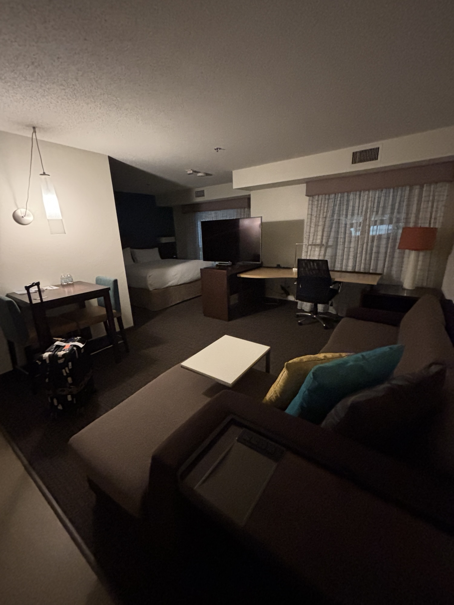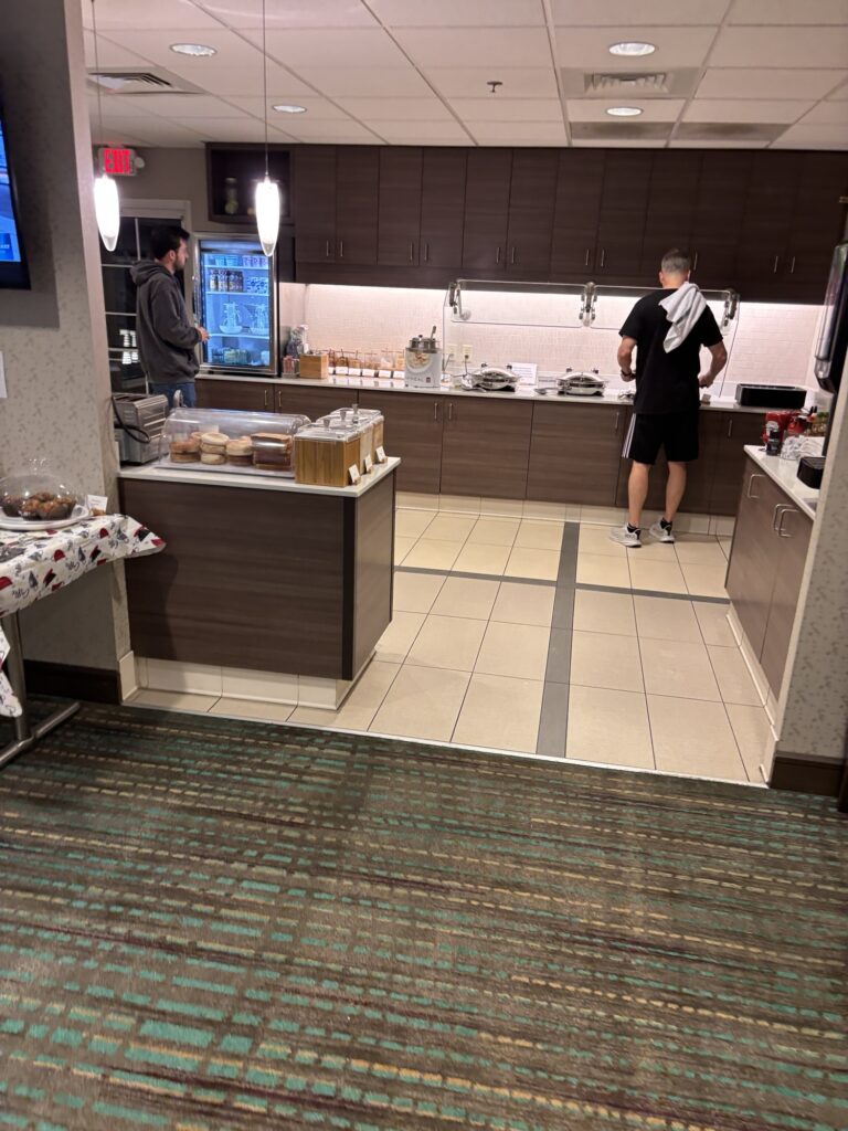 - 会社指定、というか今回は世界中から担当者が集まる世界会議だったので、全員このホテルに宿泊しています。滞在型のホテルでして、部屋は広く、キッチンもあり、充実しています。その代わり、レストランやルームサービスは無いので、正直我々のような出張者にはあまり向いてないんですね。寒い地域ですが、暖房設備はしっかりしています。