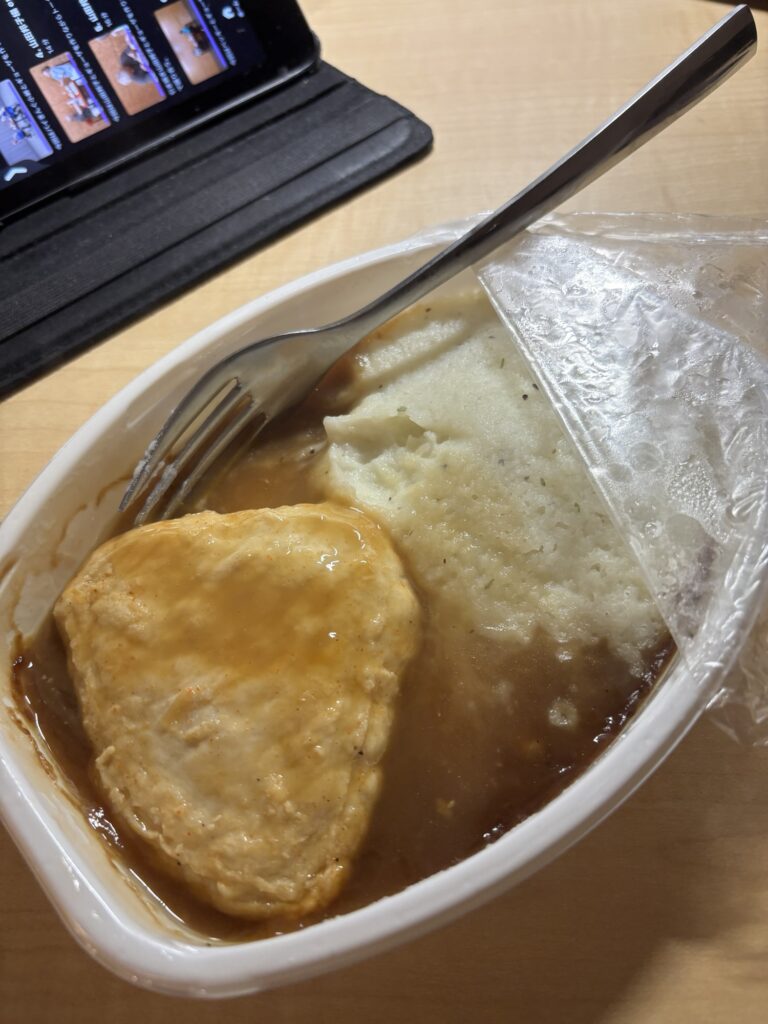 どうせ美味しくないだろうと思いましたが、やっぱり美味しくなかったです。チキンとマッシュポテト(泣
