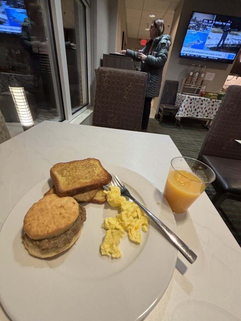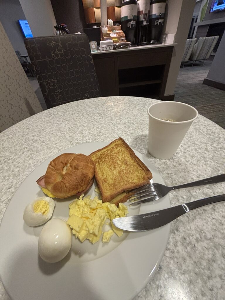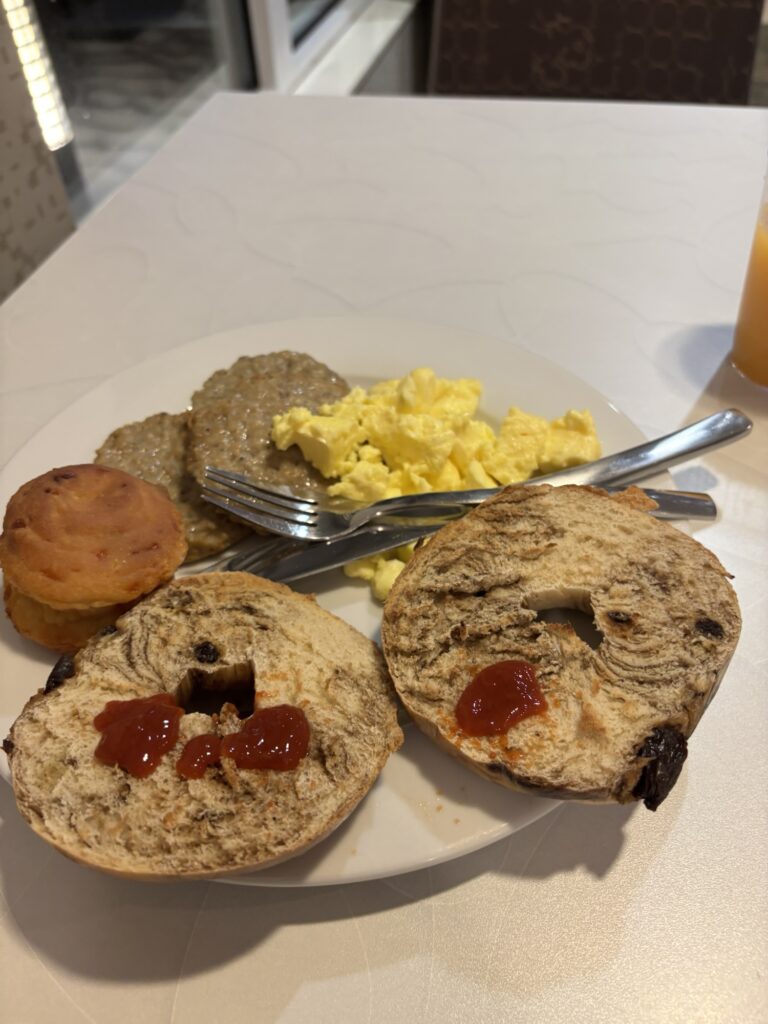 到着前の朝飯は、パンケーキ?
