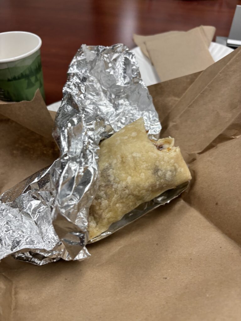 Steak Riteとかいうのを頼んだら、ラッパーでした。牛肉や玉ねぎが入っててジューシーでうまかった!