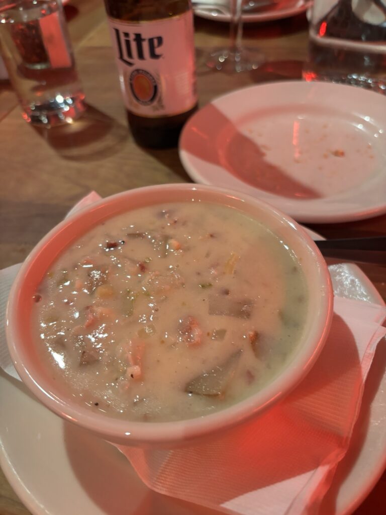 前菜でクラムチャウダー。これはなかなか美味しかった