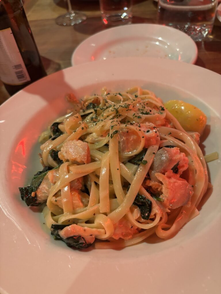 メインはサーモンレモンのフィットチーネ。。。うーむ、微妙