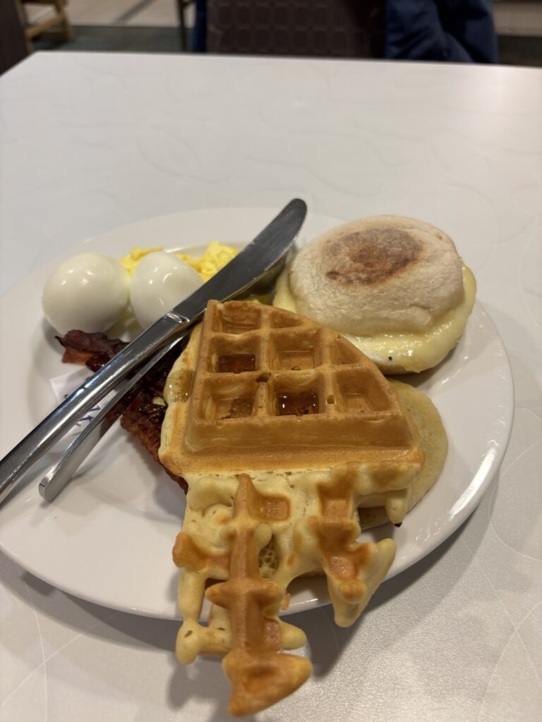 最終日ホテル朝飯。ワッフル焼いてみました