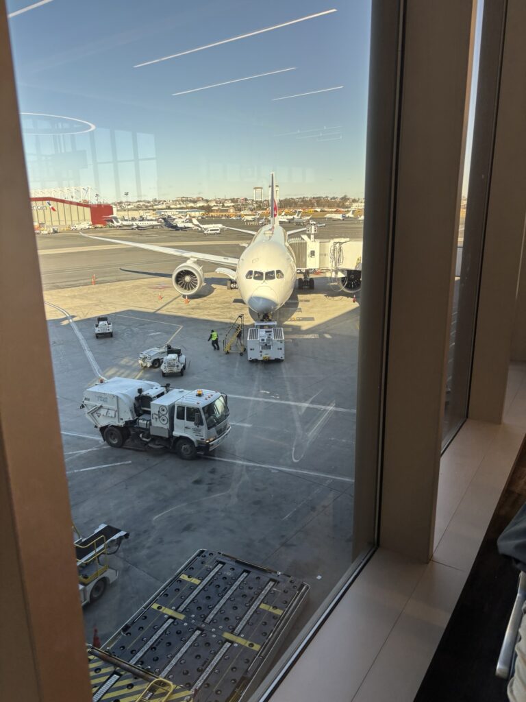 12:10 Boston発なので、10時には空港?レンタカー返却あるし、平日木曜日のラッシュ?うーむ、いろいろと考えて、レバノンを朝6:15ごろ出発しました。早く出過ぎると道路が凍結してて逆に危ない、、とか考えすぎましたね。しかし、Boston空港には9:30に到着し、10時前にはチェックインカウンターに到着。思ったよりも空港は空いてまして、ラウンジにも10:15には入れました。知らない土地での移動は気を使いますね。
